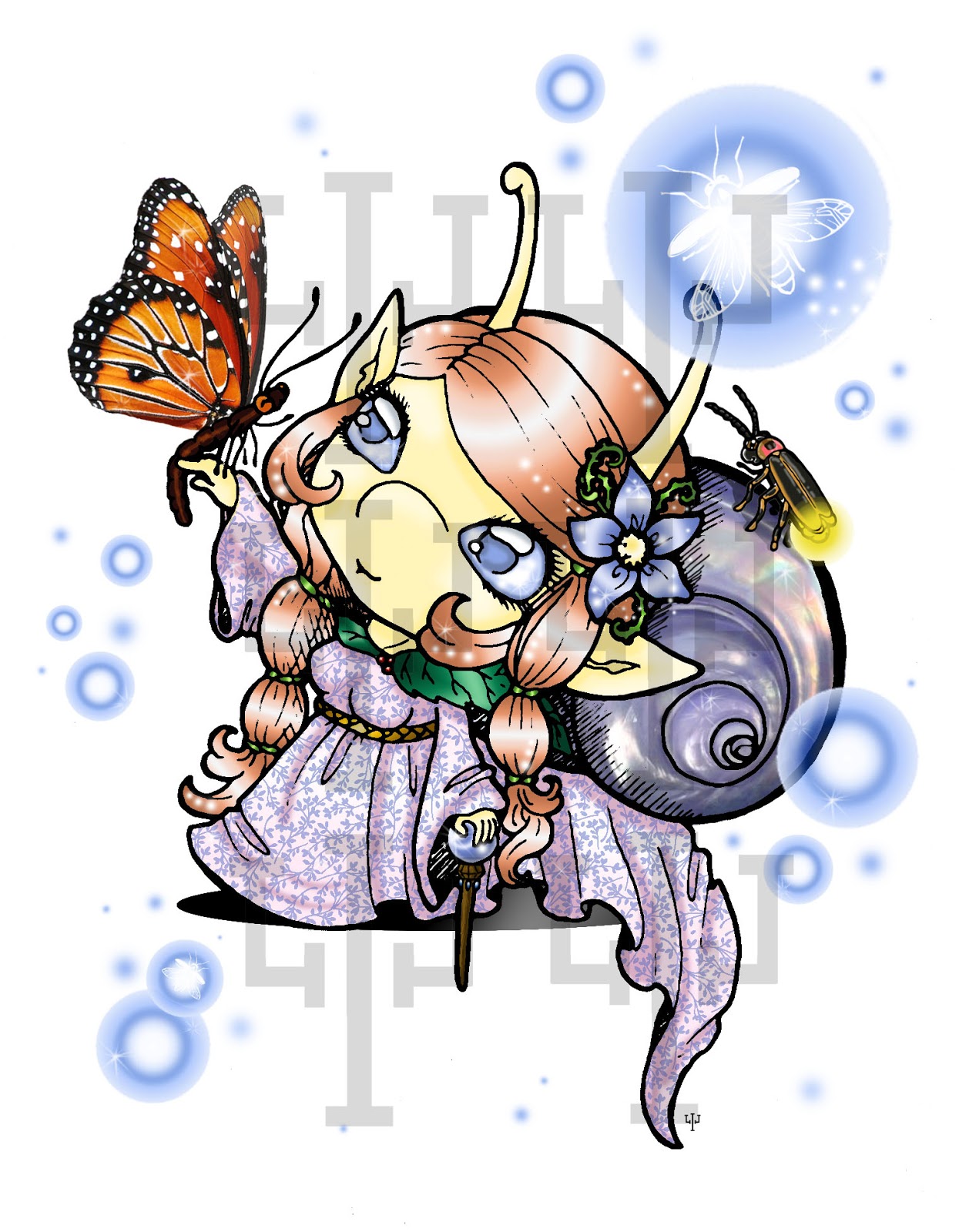 It is told that she has hundreds of years and that once was a pixie enchantress. How she became a snail is still a mystery. Because of her being a snail, she talks and walks very slowly but she doesn't leaves slime to her passage! Ahahah! XD